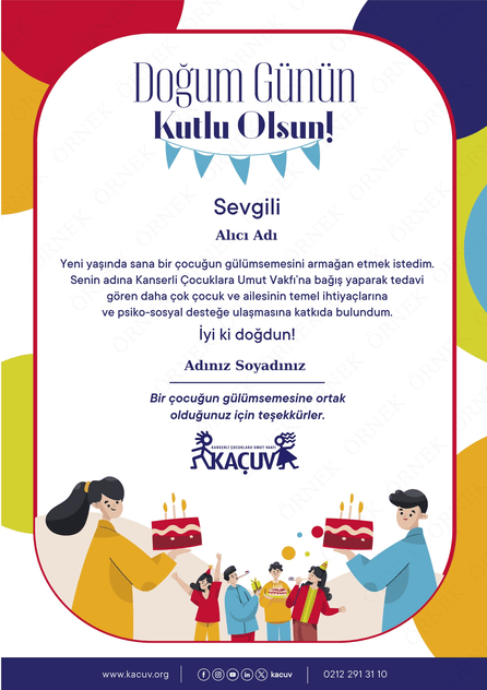En özel veya mutlu günlerinizde sevdikleriniz adına aldığınız bağış sertifikaları ile tedavi gören çocuklara ve ailelerine destek olabilirsiniz.